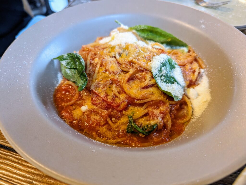 トマトの甘さと粉チーズがたっぷりパスタに絡んでシンプルに美味しい!