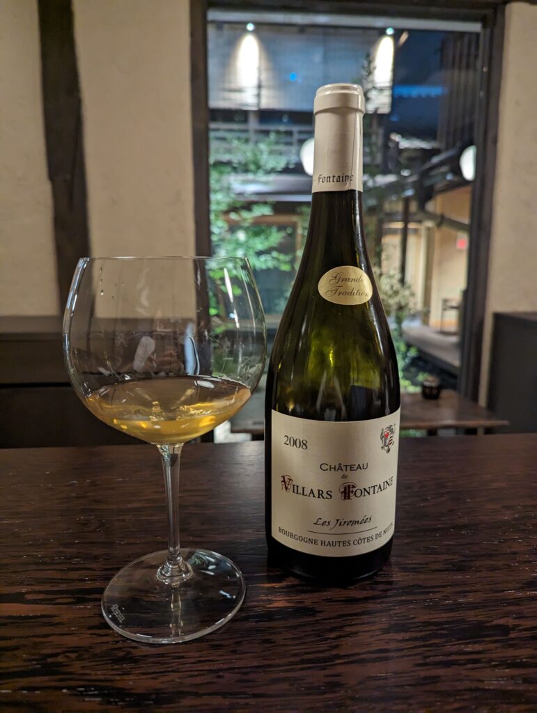 この日は、 2008年のオート コート ド ニュイ ブラン ル ルアール シャトー ド ヴィラール フォンテーヌをチョイス。 果実味がありつつも、クリーミーで複雑な味わい。 熟成感がたまりません。