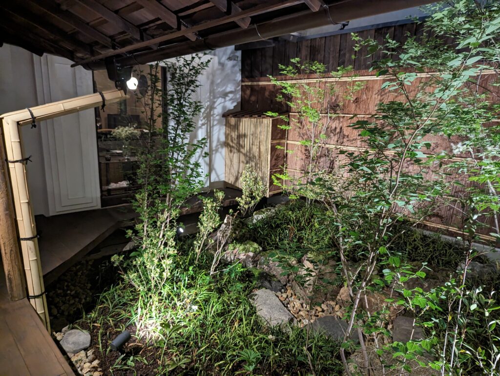 ロジオクでの食事の後、近隣を散歩していると、ひと際目を引くお店を発見しました。「フルールハルフ ブルゴーニュワインバー」と書かれた看板が目に入りました。町屋を改装した新しい感じのお店で、中庭もあってとても雰囲気が良いんです。