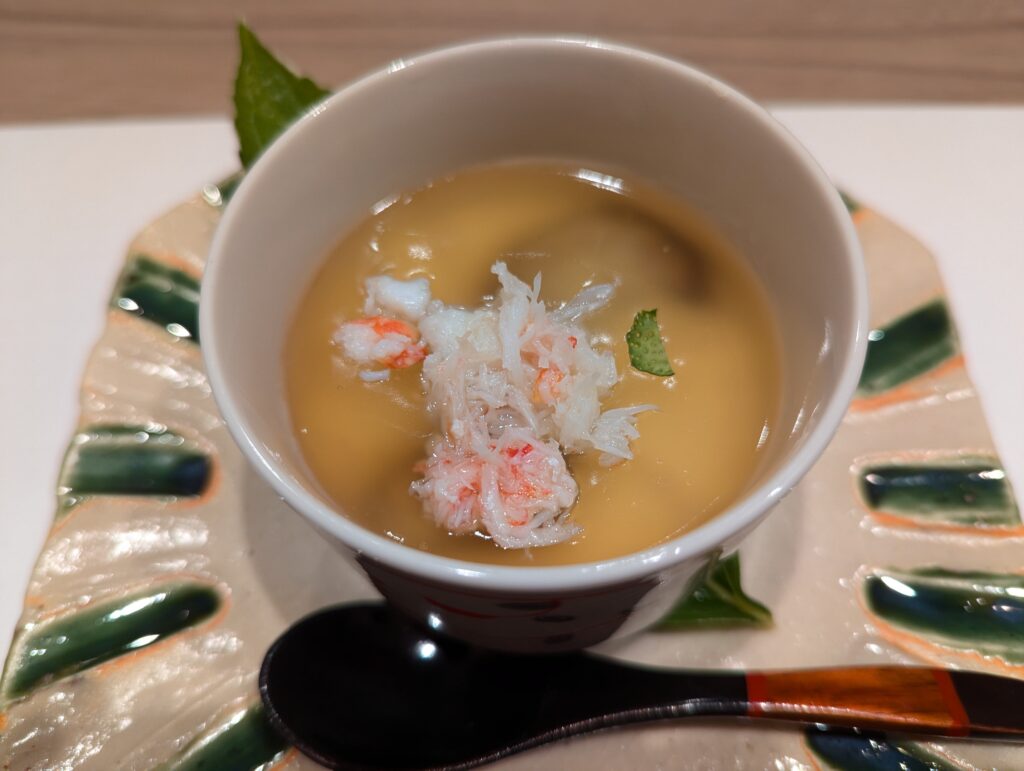 出汁の効いたスープで蟹を軽く火通し。旨味が更に引き立ちます。