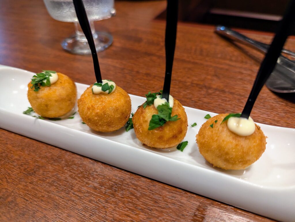 チーズのフライをピンチョスサイズで。おつまみとして食べやすくてちょうどいい。