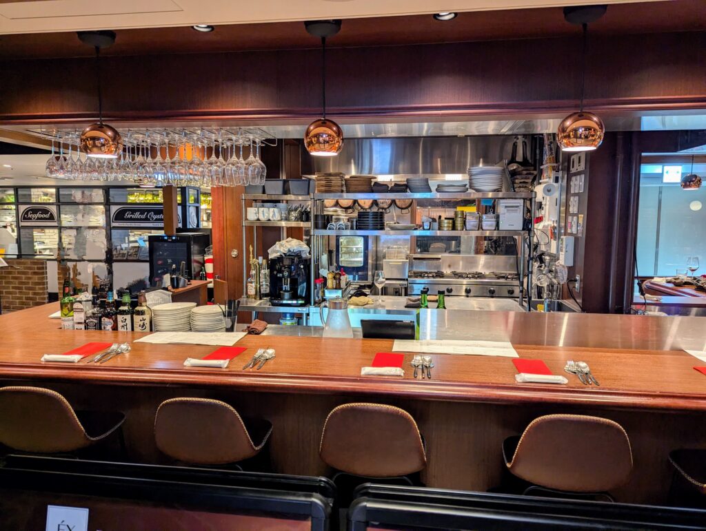 まず目を引くのがモダンでお洒落なカウンター席。 一人でも気軽に立ち寄れる雰囲気で、少人数でのディナーにもぴったりです。 インテリアのセンスの良さも相まって、まるで海外のスタイリッシュなバーにいるような気分を味わえます。