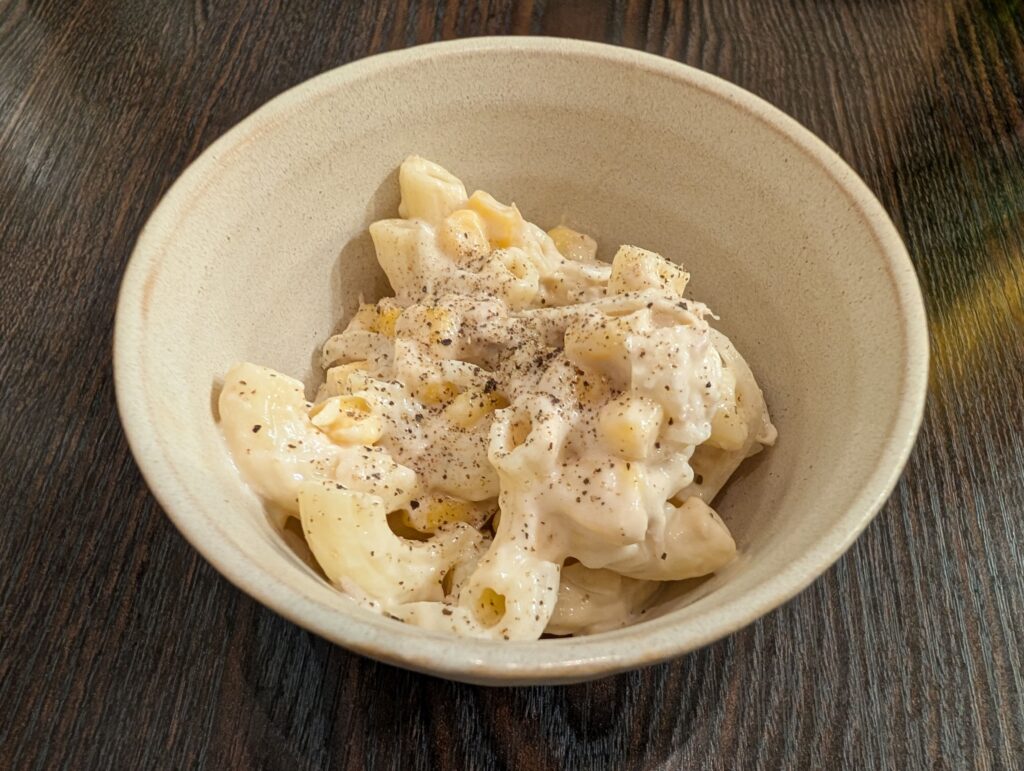 マカロニサラダ:マカロニとコーンが入っており、少し酸味を感じる素朴な味わい。