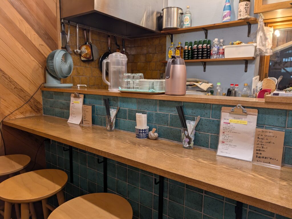 店内はこじんまりとしていて、6席(カウンター4席、テーブル2席)あります。 女性1人で切り盛りされているようで、アットホームな雰囲気が漂っています。