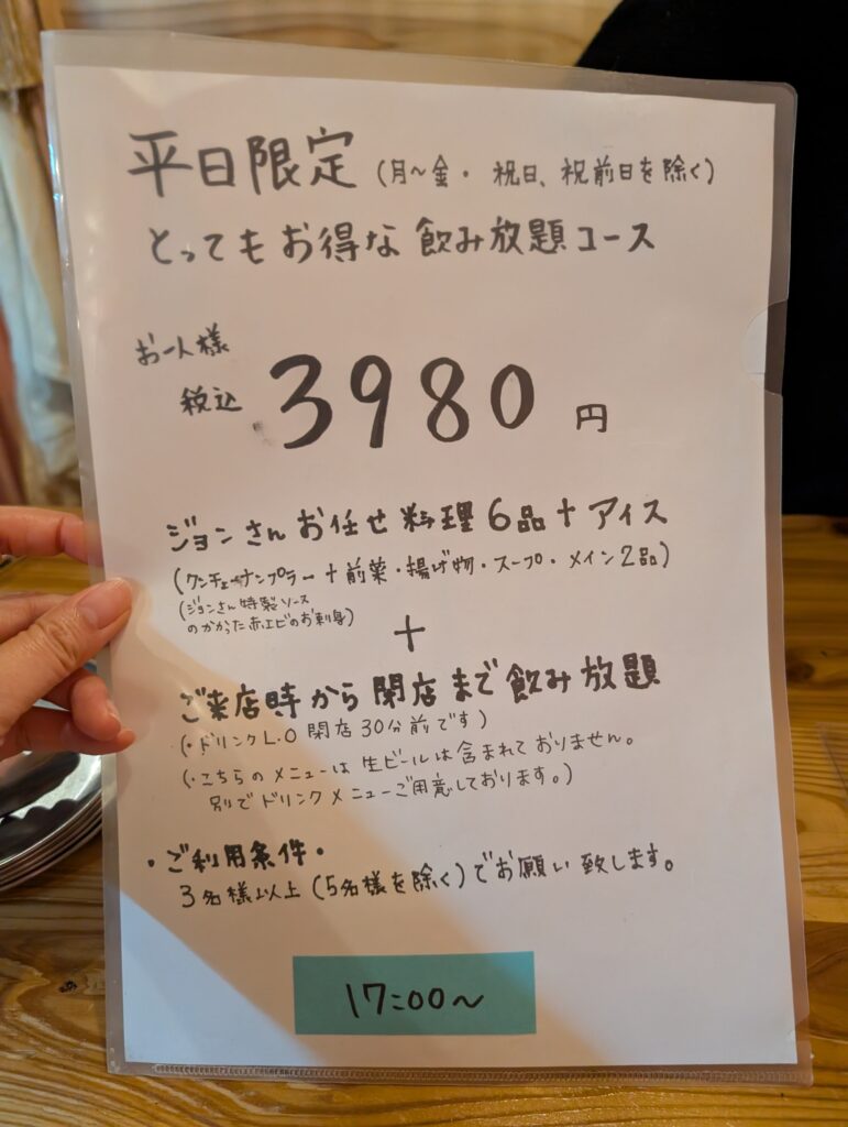 今回は、平日限定の飲み放題コース(3,980円税込)を堪能しました。