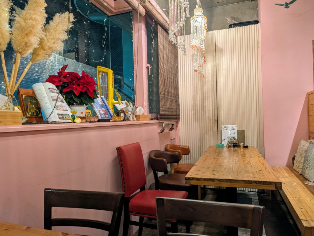 階段を上って2階に上がると、店内はピンク色を基調とした可愛らしい雰囲気で、女子会などにもぴったりなイメージ。