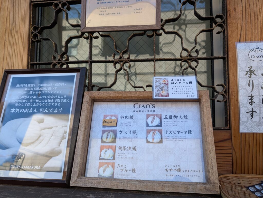 以前から気になっていた「CIAO’S KAMAKURA(チャオズ カマクラ)」。 従来の肉まんの概念を覆す創作肉まん専門店で、持ち帰りもできるお店です。