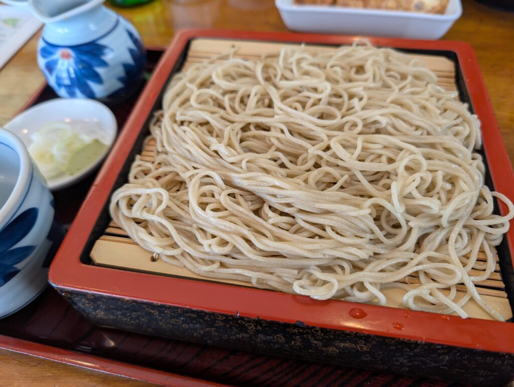 一通りおつまみと冷酒を楽しんだ後は、 やはり蕎麦屋の真骨頂である「石臼挽き手打ちせいろ」で締めました。 シンプルながらも蕎麦本来の風味と喉越しが楽しめる一品です。 つゆに軽くくぐらせて、蕎麦の香りと味わいを堪能しました。