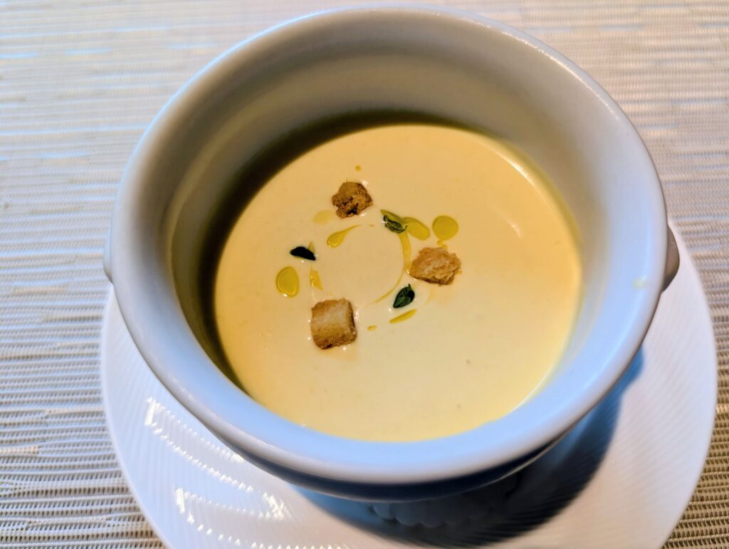 とうもろこしの甘さがダイレクトに感じられる、夏らしい一皿です。冷製スープならではの爽やかさと、素材の味を最大限に引き出した技術に感動しました。