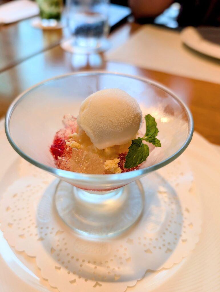 クリームの濃厚さに桃の甘さ、でも甘すぎずめちゃめちゃバランスがいい。最後まで満足度の高い内容です。