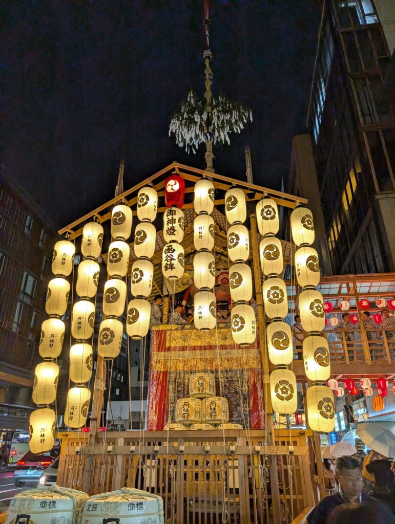 補足: 食事の後はもちろん町に繰り出して宵々山を体験。 現地の方のアテンドで、さまざまな山車とその由来などお聞きすることができました。 暗闇に浮かぶ山鉾の灯りが印象的でした。