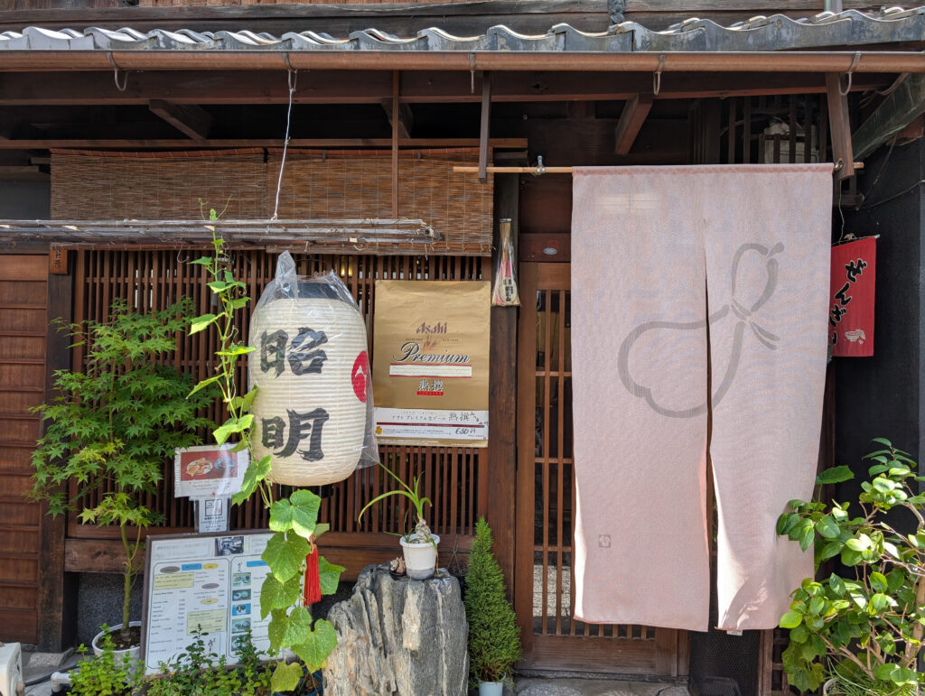 祇園祭の郭巨山の拠点があったところの路地奥にひっそりと佇む、 京町家の喫茶店「喫茶喜多西」。
