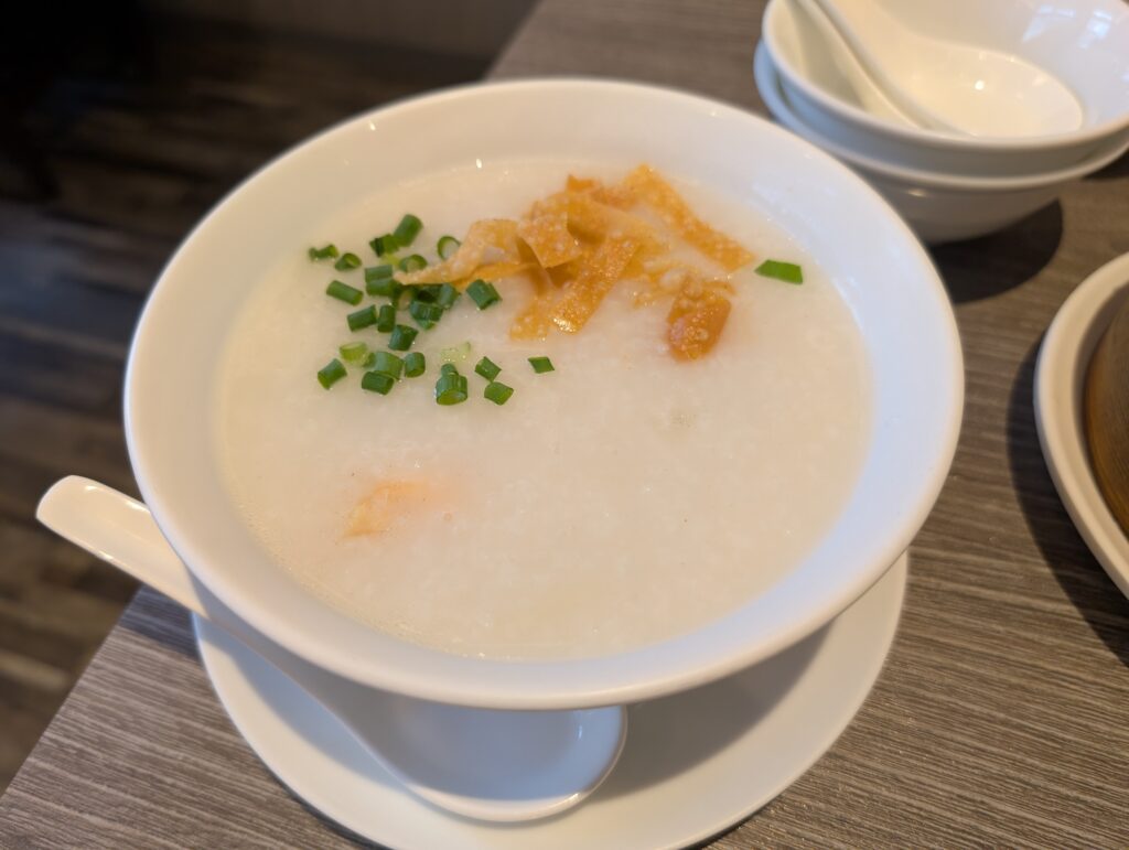 今回最も感動したのがこちらのお粥。 大ぶりのエビが入っており、食べ応えも十分です。 お粥は優しい味わいながら、海老の旨味がしっかりと感じられます。