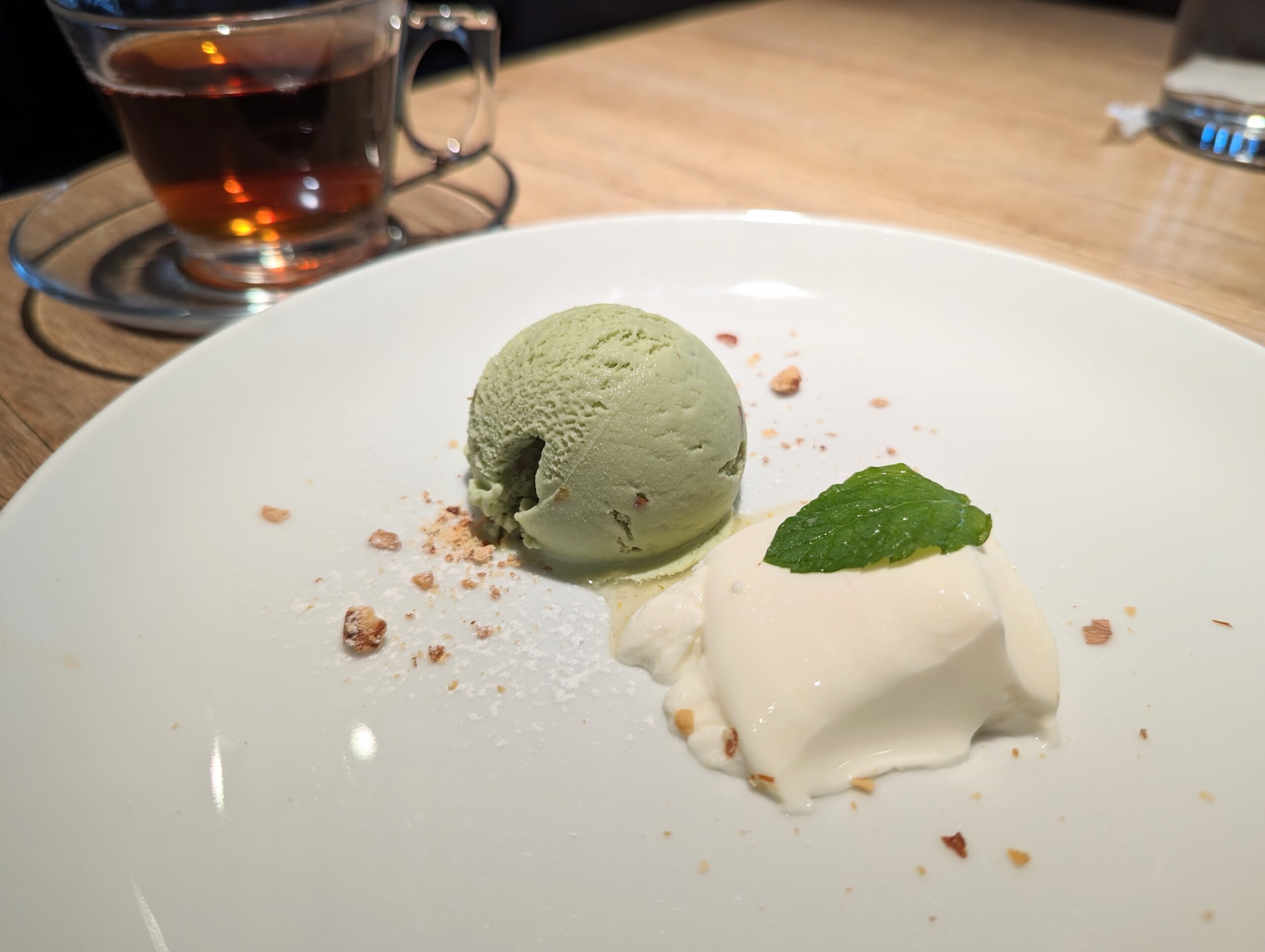 ピスタチオのアイスとパンナコッタと紅茶