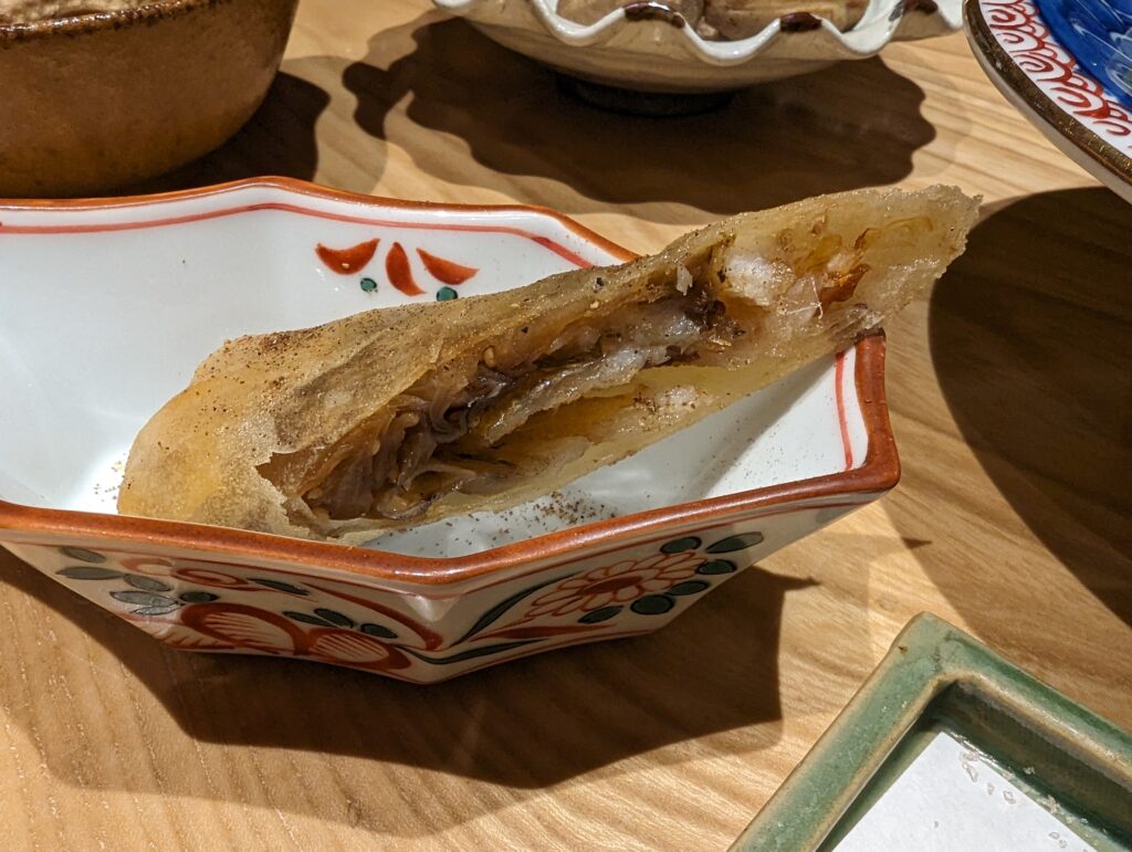 こちらはシェアするために、半分に切って出してもらいました。 蕗味噌が味のアクセントとなり、日本酒のアテにピッタリ。
