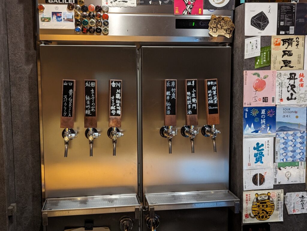 こちらのお店、クラフトビールのように真空樽の日本酒をタップからいただくこともできるんです!