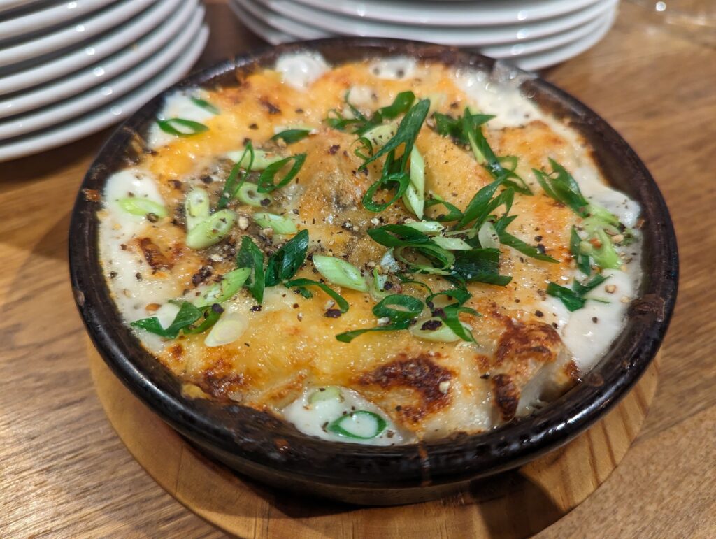 さといもに癖のあるゴルゴンゾーラを組み合わせが面白い。 熱々で冬にピッタリ。