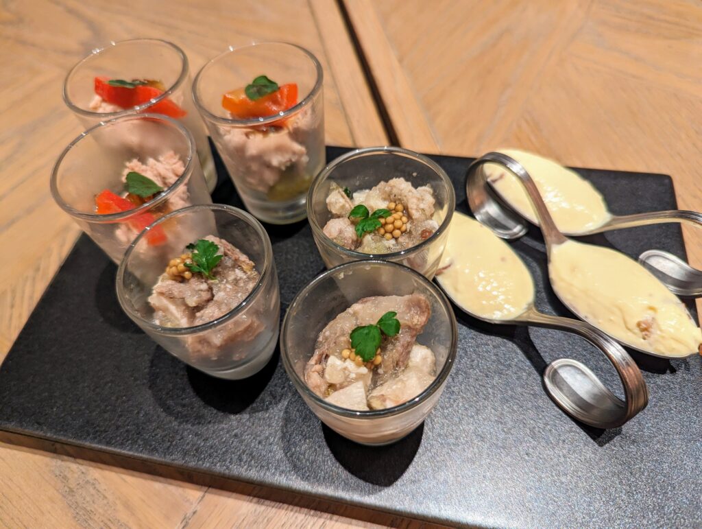 ワインに合いそうな3品。残念ながらこの日はノンアル。
