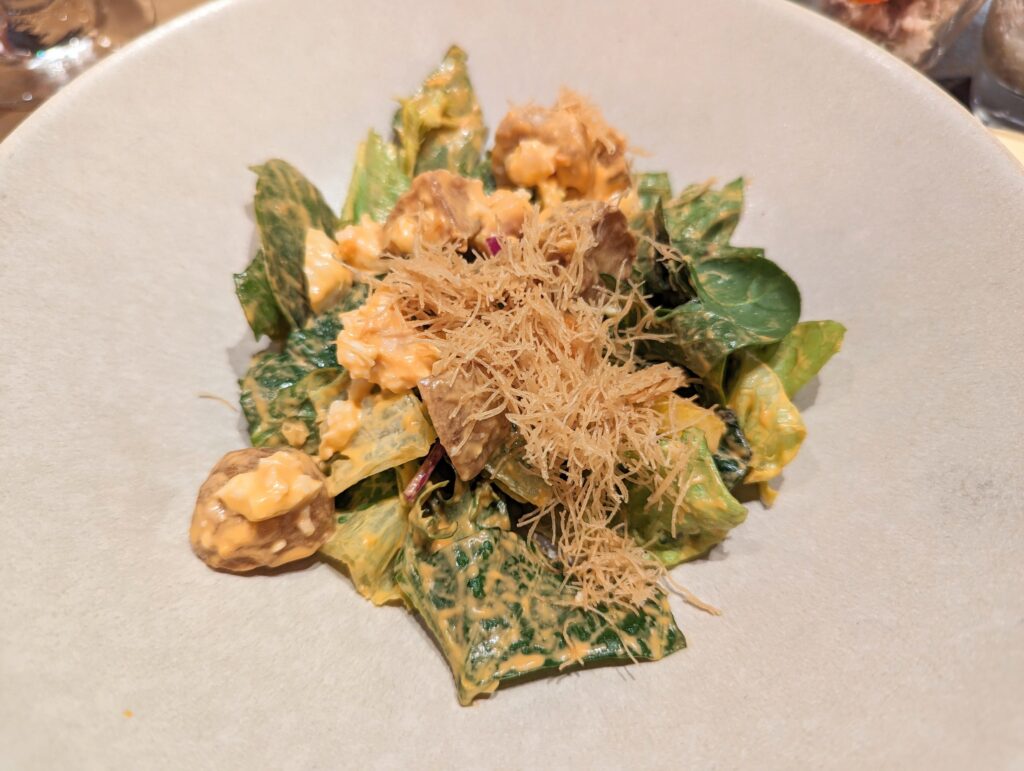 バリパリの食感とコクのあるアーモンドのドレッシングでサラダがリッチな味わいに。