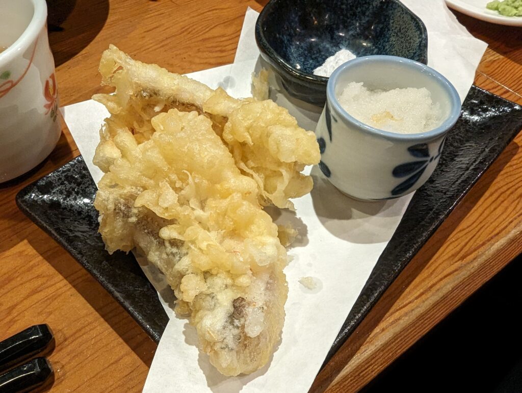 こちらは甘鯛を天ぷらに。たっぷりのおろしとつゆでいただきました。