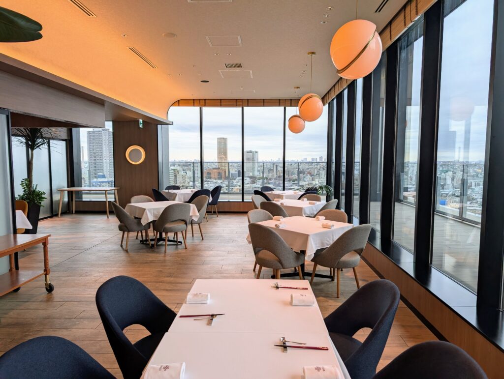 口コミでは「場所が少し分かりづらい」との声もありましたが、 新南口から駅直結のSakura Stage経由で向かったため、スムーズにアクセスできました。 お店はモダンで落ち着いた雰囲気。眺望も素晴らしく、開放感があります。