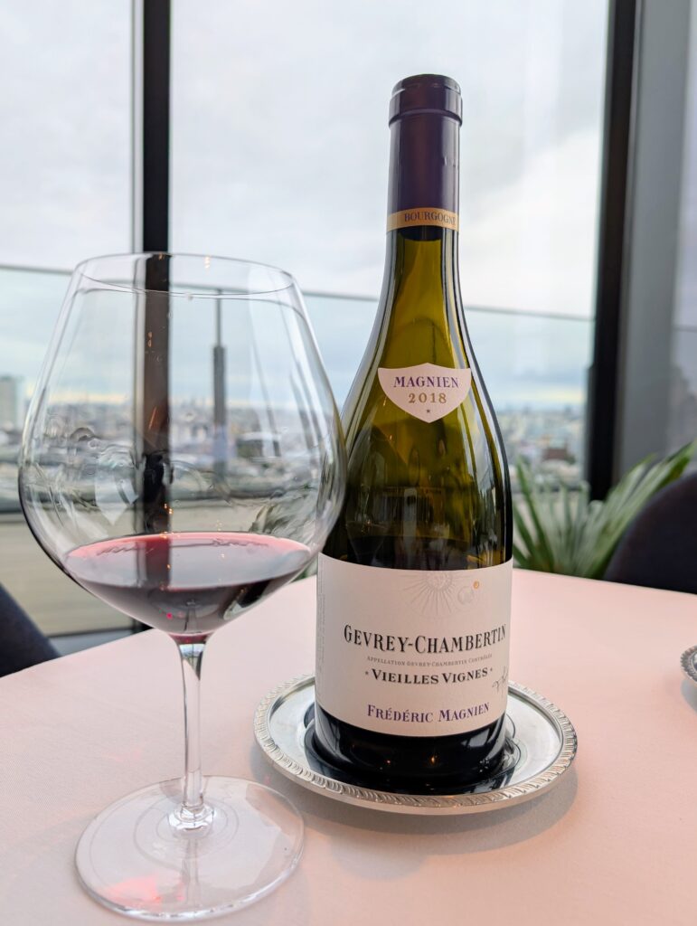 このお料理に合わせたワインはブルゴーニュのピノ・ノワール 「フレデリック マニャン ジュヴレ シャンベルタン ヴィエイユ ヴィーニュ 2018」。 意外に思えましたが、スモークの香りとの相性が抜群でした。