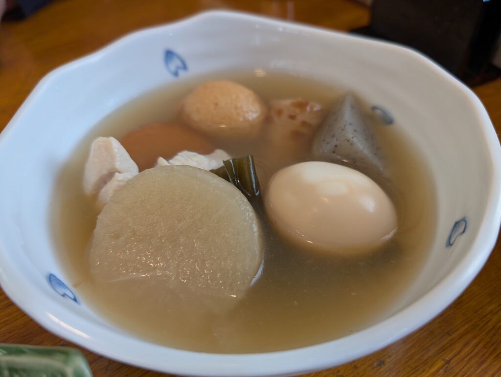 「おでん」はさっぱりとした出汁風味、「かつ煮」は味が濃いめの甘辛いタレでご飯が欲しくなる味でした。