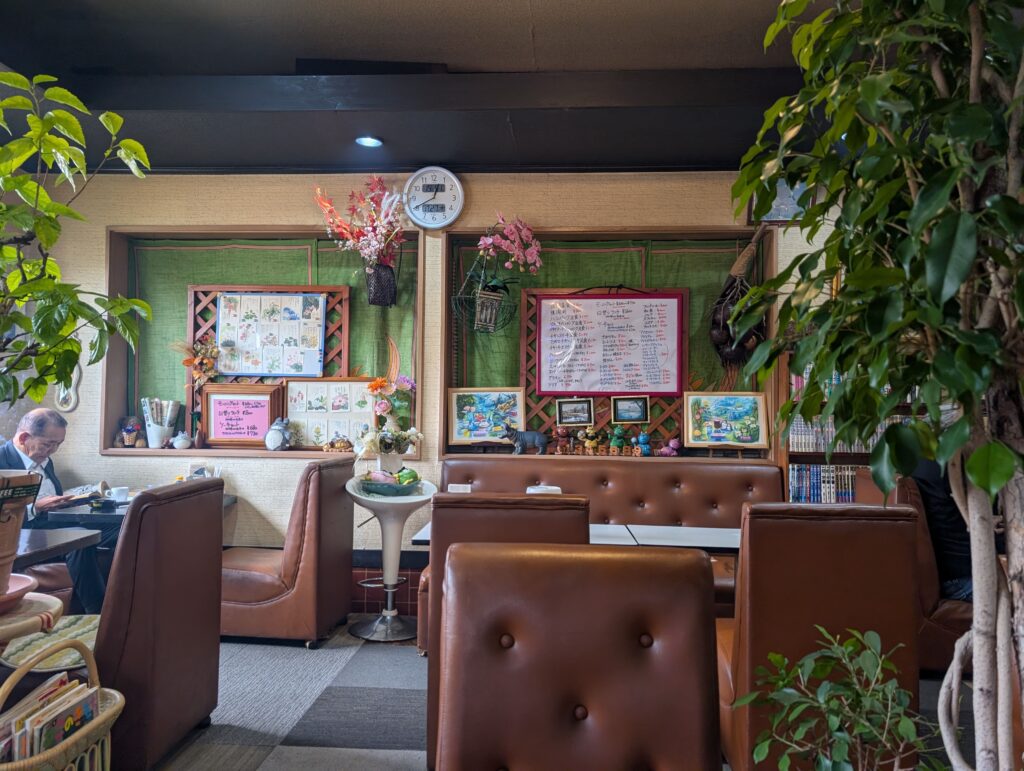 「あ、これ昔の喫茶店によくあったなあ」と一瞬で昭和の空気に包まれます。インテリアも長年大切に使われてきた風合いがあり、初めて来たのにどこか懐かしい、実家に帰ってきたような安心感があります。
